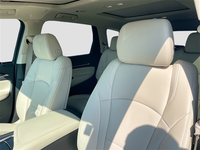 FWD, 10 Speakers, 18`` Aluminum Wheels, 20`` Polished Aluminum Wheels, 2nd Row Heated Outboard Seats, 3 Years of OnStar & Connected Services Plan (DISC), 3.49 Axle Ratio, 3rd row seats: split-bench, 4-Wheel Disc Brakes, 6-Way Power Front Passenger Seat Adjuster, 7-Passenger Seating, 8-Way Power Driver Seat Adjuster, ABS brakes, Air Conditioning, Alloy wheels, AM/FM radio: SiriusXM with 360L, Auto High-beam Headlights, Auto-dimming door mirrors, Auto-dimming Rear-View mirror, Automatic temperature control, Bose Performance-Enhanced 10-Speaker System, Brake assist, Bumpers: body-color, Compass, Delay-off headlights, Driver 4-Way Power Lumbar Seat Adjuster, Driver door bin, Driver vanity mirror, Dual front impact airbags, Dual front side impact airbags, Electronic Stability Control, Emergency communication system: OnStar and Buick connected services capable, Experience Buick Package, Exterior Parking Camera Rear, Four wheel independent suspension, Front & Rear Park Assist, Front anti-roll bar, Front Bucket Seats, Front Center Armrest, Front dual zone A/C, Front Mounting License Plate Bracket Package, Front Passenger 4-Way Power Lumbar Seat Adjuster, Front Power Sliding Moonroof, Front reading lights, Fully automatic headlights, Garage door transmitter, Heads-Up Display, Heated door mirrors, Heated Driver & Front Passenger Seats, Heated front seats, Heated rear seats, Heated Steering Wheel, Heated steering wheel, Illuminated entry, Leather steering wheel, Low tire pressure warning, Memory Package, Memory seat, Navigation System, Not Equip w/Ventilated Seat Cushion Blower Motor, Not Equipped w/Front & Rear Park Assist, Occupant sensing airbag, Outside temperature display, Overhead airbag, Overhead console, Panic alarm, Passenger door bin, Passenger vanity mirror, Perforated Leather-Appointed Seat Trim, Power door mirrors, Power driver seat, Power Liftgate, Power passenger seat, Power steering, Power windows, Preferred Equipment Group 1SN, Premium audio system: Buick Infotainment System, Radio data system, Radio: Buick Infotainment Sys AM/FM Stereo w/Nav, Rear air conditioning, Rear anti-roll bar, Rear reading lights, Rear window defroster, Rear window wiper, Remote keyless entry, Roof rack: rails only, Security system, SiriusXM w/360L, Speed control, Speed-sensing steering, Spoiler, Steering wheel memory, Steering wheel mounted audio controls, Tachometer, Telescoping steering wheel, Tilt steering wheel, Traction control, Trip computer, Turn signal indicator mirrors, Variably intermittent wipers, Ventilated Driver & Front Passenger Seats, Ventilated front seats, Voltmeter, Wireless Apple CarPlay/Wireless Android Auto, FWD.