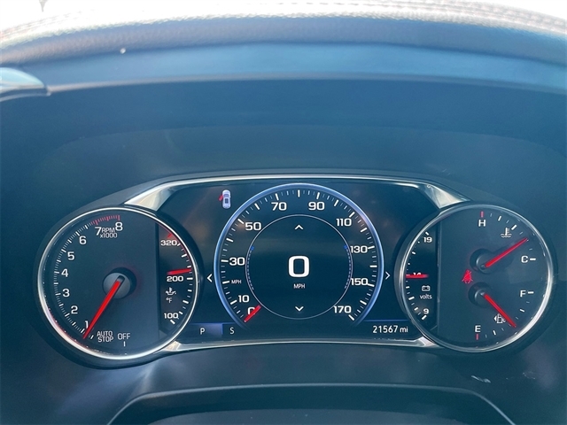 3.49 Final Drive Axle Ratio, 4-Wheel Disc Brakes, 6-Way Power Front Passenger Seat Adjuster, 8 Speakers, 8-Way Power Driver Seat Adjuster, ABS brakes, Adaptive Cruise Control, Air Conditioning, Alloy wheels, AM/FM radio: SiriusXM with 360L, Apple CarPlay/Android Auto, Auto High-beam Headlights, Auto-dimming door mirrors, Auto-dimming Rear-View mirror, Automatic temperature control, Black 2-Tone Roof, Bose Premium 8-Speaker Audio System Feature, Brake assist, Bumpers: body-color, Child-Seat-Sensing Airbag, Compass, Delay-off headlights, Driver Confidence II Package, Driver door bin, Driver vanity mirror, Dual front impact airbags, Dual front side impact airbags, Electronic Stability Control, Emergency communication system: OnStar and Chevrolet connected services capable, Enhanced Automatic Emergency Braking, Enhanced Convenience Package, Four wheel independent suspension, Front anti-roll bar, Front Bucket Seats, Front Center Armrest, Front dual zone A/C, Front reading lights, Fully automatic headlights, Garage door transmitter, HD Surround Vision, Heated door mirrors, Heated Driver & Front Passenger Seats, Heated front seats, Heated Rear Outboard Seating Positions, Heated Steering Wheel, Heated steering wheel, Illuminated entry, Knee airbag, Leather Shift Knob, Leather steering wheel, Low tire pressure warning, Memory Settings For Driver Seat & Exterior Mirrors, Navigation System, Occupant sensing airbag, Outside temperature display, Overhead airbag, Overhead console, Panic alarm, Passenger door bin, Passenger vanity mirror, Perforated Leather-Appointed Seat Trim, Power door mirrors, Power Driver Lumbar Control, Power driver seat, Power Liftgate, Power Panoramic Tilt-Sliding Sunroof, Power passenger seat, Power steering, Power Tilt & Telescoping Steering Column, Power windows, Preferred Equipment Group 1RS, Premium audio system: Chevrolet Infotainment 3 Premium, Radio data system, Radio: Chevrolet Infotainment 3 Premium System, Rear anti-roll bar, Rear Camera Mirror, Rear Camera Mirror Washer, Rear reading lights, Rear seat center armrest, Rear window defroster, Rear window wiper, Remote keyless entry, Ride & Handling Suspension, Safety Alert Seat, Security system, SiriusXM w/360L, Speed control, Speed-sensing steering, Split folding rear seat, Spoiler, Steering wheel mounted audio controls, Tachometer, Telescoping steering wheel, Tilt steering wheel, Traction control, Trip computer, Turn signal indicator mirrors, Variably intermittent wipers, Ventilated Driver & Front Passenger Seats, Voltmeter, Wheels: 20`` Technical Gray Aluminum, Wheels: 21`` High Gloss Black w/Machined Face. Recent Arrival!