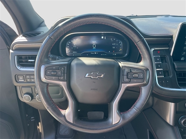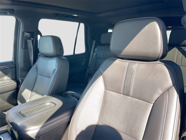 Red Leather, 10-Way Power Driver & Passenger Seat Adjusters, 1st & 2nd Row Color-Keyed Carpeted Floor Mats, 2nd Row Pwr Release 60/40 Split-Folding Bench Seat, 3.23 Rear Axle Ratio, 3rd Row 60/40 Power-Folding Split-Bench Seat, 3rd row seats: split-bench, 4-Wheel Disc Brakes, 9 Speakers, ABS brakes, Air Conditioning, Alloy wheels, AM/FM radio: SiriusXM with 360L, Apple CarPlay/Android Auto, Auto High-beam Headlights, Auto-Dimming Inside Rear-View Mirror, Auto-dimming Rear-View mirror, Automatic Stop/Start, Automatic temperature control, Bose 9-Speaker Stereo Audio System Feature, Brake assist, Bright Front & Rear Door Sill Plates, Bumpers: body-color, Color-Keyed Carpeting Floor Covering, Compass, Delay-off headlights, Driver & Front Outboard Passenger Airbags, Driver Alert Package, Driver door bin, Driver vanity mirror, Dual front impact airbags, Dual front side impact airbags, Dual-Pane Power Panoramic Sunroof, Electronic Stability Control, Emergency communication system: OnStar and Chevrolet connected services capable, Enhanced Driver Information Center, Floor Console w/Storage Area, Four wheel independent suspension, Front anti-roll bar, Front Bucket Seats, Front Center Armrest, Front dual zone A/C, Front High-Back Reclining Bucket Seats, Front reading lights, Fully automatic headlights, Garage door transmitter, Hands-Free Rear Power Programmable Liftgate, HD Surround Vision, Heated 2nd Row Outboard Seats, Heated door mirrors, Heated Driver & Front Passenger Seats, Heated front seats, Heated Steering Wheel, Illuminated entry, Infotainment Display, Lane Change Alert w/Side Blind Zone Alert, Leather steering wheel, Leather-Wrapped Steering Wheel, LED Daytime Running Lamps, License Plate Front Mounting Package, Low tire pressure warning, Luxury Package, Memory seat, Memory Settings, Memory Settings for Driver, Navigation System, Not Equipped w/Front & Rear Park Assist, Not Equipped w/Steering Column Lock, Occupant sensing airbag, Outside Heated Power-Adjustable Mirrors, Outside temperature display, Overhead airbag, Overhead console, Panic alarm, Passenger door bin, Passenger vanity mirror, Perforated Leather Seat Trim, Power door mirrors, Power driver seat, Power Liftgate, Power passenger seat, Power Release 2nd Row Bucket Seats, Power steering, Power Tilt & Telescopic Steering Column, Power windows, Preferred Equipment Group 1SP, Premium audio system: Chevrolet Infotainment System 3, Premium Smooth Ride Suspension, Radio: Chevrolet Infotainment 3 Premium System, Rain sensing wipers, Rear air conditioning, Rear anti-roll bar, Rear Cross Traffic Alert, Rear Pedestrian Alert, Rear reading lights, Rear seat center armrest, Rear window defroster, Rear window wiper, Remote keyless entry, Remote Start, Roof rack: rails only, Security system, Set of 4 Wheel Locks (LPO), SiriusXM Radio w/360L, Speed control, Speed-sensing steering, Split folding rear seat, Spoiler, Start/Stop System Disable Button, Steering wheel mounted audio controls, Tachometer, Telescoping steering wheel, Tilt steering wheel, Traction control, Trip computer, Universal Home Remote, Variably intermittent wipers, Voltmeter, Wheels: 22`` x 9`` Bright Machined, Wireless Charging, Red Leather. Recent Arrival!