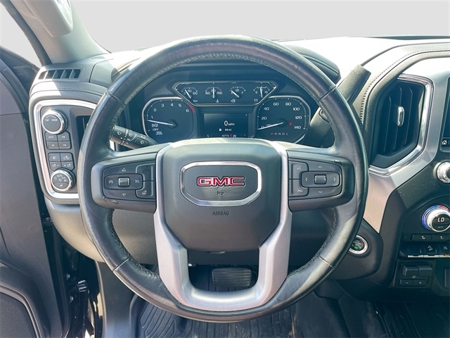 Clean CARFAX. Onyx Black 2021 GMC Sierra 1500 SLT 4WD 8-Speed Automatic EcoTec3 5.3L V8