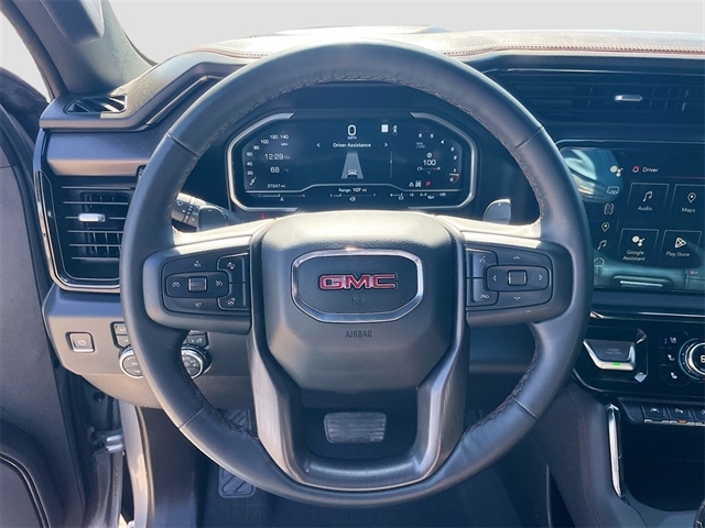 10-Speed Automatic, 4WD, Jet Black With Kalahari Accents Leather, 10-Way Power Driver Seat Adjuster w/Lumbar, 10-Way Power Passenger Seat Adjuster w/Lumbar, 120-Volt Bed Mounted Power Outlet, 120-Volt Instrument Panel Power Outlet, 18`` x 8.5`` Machined Aluminum Wheels, 2 Charge/Data USB Ports Inside Center Console, 2 Type-C Charge-Only Rear USB Ports, 2 USB Ports, 220 Amp Alternator, 3.23 Rear Axle Ratio, 4-Wheel Disc Brakes, 7 Speakers, ABS brakes, Adaptive Cruise Control, Air Conditioning, Alloy wheels, AM/FM radio, Apple CarPlay/Android Auto, AT4 CarbonPro Edition, AT4 Preferred Package, AT4 Premium Package, Auto High-beam Headlights, Auto-dimming door mirrors, Auto-dimming Rear-View mirror, Auto-Locking Rear Differential, Automatic Emergency Braking, Automatic temperature control, Bed View Camera, Black Chrome Header & Grille Insert Bars, Block heater, Brake assist, Buckle to Drive, Bumpers: body-color, Carbon Fiber Composite Bed, CarbonPro Fender Hard Badge, Cargo Convenience Package, Color-Keyed Carpeting Floor Covering, Compass, Console-Mounted Safe (LPO), Deep-Tinted Glass, Delay-off headlights, Driver door bin, Driver Memory, Driver vanity mirror, Dual front impact airbags, Dual front side impact airbags, Electric Rear-Window Defogger, Electrical Steering Column Lock, Electronic Stability Control, Emergency communication system: OnStar and GMC connected services capable, Engine Block Heater, Floor-Mounted Center Console, Following Distance Indicator, Forward Collision Alert, Front anti-roll bar, Front Bucket Seats, Front Center Armrest, Front dual zone A/C, Front fog lights, Front License Plate Kit, Front Pedestrian Braking, Front Prem Floor Liners w/Removable Carpet Insert, Front Rainsensing Wipers, Front reading lights, Front wheel independent suspension, Fully automatic headlights, GMC Connected Access Capable, HD Surround Vision, Heated 2nd Row Outboard Seats, Heated door mirrors, Heated Driver & Front Outboard Passenger Seating, Heated front seats, Heated rear seats, Heated steering wheel, Heavy-Duty Air Filter, Hill Descent Control, Hitch Guidance, Hitch Guidance w/Hitch View, Illuminated entry, In-Vehicle Trailering App, Integrated Trailer Brake Controller, IntelliBeam Automatic High Beam On/Off, Keyless Open & Start, Lane Keep Assist w/Lane Departure Warning, LED Cargo Area Lighting, Low tire pressure warning, Memory seat, Multicolor 15`` Diagonal Head-Up Display, MultiPro Audio System by Kicker (LPO), Navigation System, Not Equipped w/Steering Column Lock, Occupant sensing airbag, Off-Road High Clearance Step (LPO), Off-Road Suspension, OnStar & GMC Connected Services Capable, Outside temperature display, Overhead airbag, Overhead console, Panic alarm, Passenger door bin, Passenger vanity mirror, Perforated Front Leather Seat Trim, Perimeter Lighting, Power Door Locks, Power door mirrors, Power driver seat, Power Front Passenger Windows w/Express Up/Down, Power Front Windows w/Driver Express Up/Down, Power passenger seat, Power Rake & Telescoping Steering Column, Power Rear Windows w/Express Down, Power Sliding Rear Window w/Rear Defogger, Power steering, Power windows, Preferred Equipment Group 4SB, Premium audio system: GMC Infotainment System, Premium Bose 7-Speaker Sound System, Push Button Start, Radio data system, Radio: Premium GMC Infotainment Audio System, Rain sensing wipers, Rear Camera Mirror, Rear Cross Traffic Braking, Rear Pedestrian Detection, Rear Prem Floor Liners w/Removable Carpet Insert, Rear reading lights, Rear seat center armrest, Rear step bumper, Rear Underseat Storage (LPO), Rear Wheelhouse Liners, Rear window defroster, Red Recovery Hooks, Remote keyless entry, Remote Vehicle Starter System, Safety Alert Seat, Security system, Si