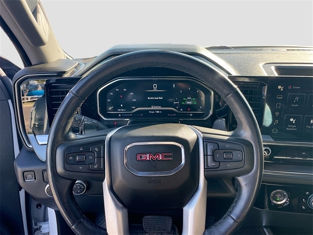 10-Speed Automatic, Jet Black Leather, 10-Way Power Driver Seat Adjuster w/Lumbar, 10-Way Power Passenger Seat Adjuster w/Lumbar, 120-Volt Bed Mounted Power Outlet, 120-Volt Instrument Panel Power Outlet, 170 Amp Alternator, 2 Charge/Data USB Ports, 2 Charge/Data USB Ports Inside Center Console, 2 Type-C Charge-Only Rear USB Ports, 20`` Polished Aluminum Wheels, 3.23 Rear Axle Ratio, 4-Wheel Disc Brakes, 6 Speakers, 6-Speaker Audio System Feature, ABS brakes, Adaptive Cruise Control, Air Conditioning, All-Weather Floor Liner (LPO), Alloy wheels, AM/FM radio, Apple CarPlay/Android Auto, Auto High-beam Headlights, Auto-dimming door mirrors, Auto-dimming Rear-View mirror, Auto-Locking Rear Differential, Automatic Emergency Braking, Automatic temperature control, Auxiliary External Transmission Oil Cooler, Brake assist, Buckle to Drive, Bumpers: chrome, Chrome Header & Chrome Grille Insert Bars, Chrome Wheel To Wheel Assist Steps, Color-Keyed Carpeting Floor Covering, Compass, Deep-Tinted Glass, Delay-off headlights, Driver door bin, Driver Memory, Driver vanity mirror, Dual front impact airbags, Dual front side impact airbags, Electric Rear-Window Defogger, Electrical Steering Column Lock, Electronic Precision Shift, Electronic Stability Control, Emergency communication system: OnStar and GMC connected services capable, Floor-Mounted Center Console, Following Distance Indicator, Forward Collision Alert, Front 40/20/40 Split-Bench Seat, Front anti-roll bar, Front Bucket Seats, Front Center Armrest w/Storage, Front dual zone A/C, Front fog lights, Front Frame-Mounted Black Recovery Hooks, Front License Plate Kit, Front Pedestrian Braking, Front Rainsensing Wipers, Front reading lights, Front wheel independent suspension, Fully automatic headlights, GMC Connected Access Capable, GMC MultiPro Tailgate Step Lights (LPO), HD Rear Vision Camera, Heated 2nd Row Outboard Seats, Heated door mirrors, Heated Driver & Front Outboard Passenger Seating, Heated front seats, Heated steering wheel, High Capacity Suspension Package, Hitch Guidance, Illuminated entry, IntelliBeam Automatic High Beam On/Off, Keyless Open & Start, Lane Keep Assist w/Lane Departure Warning, LED Cargo Area Lighting, Low tire pressure warning, Manual Tilt-Wheel & Telescoping Steering Column, Memory seat, Navigation System, Not Equipped w/Steering Column Lock, Occupant sensing airbag, OnStar & GMC Connected Services Capable, Outside temperature display, Overhead airbag, Overhead console, Panic alarm, Passenger door bin, Passenger vanity mirror, Perf Leather-Appointed Front Outboard Seat Trim, Perimeter Lighting, Power Door Locks, Power door mirrors, Power driver seat, Power Front Passenger Windows w/Express Up/Down, Power Front Windows w/Driver Express Up/Down, Power passenger seat, Power Rake & Telescoping Steering Column, Power Rear Windows w/Express Down, Power Sliding Rear Window w/Rear Defogger, Power steering, Power windows, Preferred Equipment Group 4SA, Premium audio system: GMC Infotainment System, Premium Bose 7-Speaker Sound System, Push Button Start, Radio data system, Radio: Premium GMC Infotainment Audio System, Rain sensing wipers, Rear reading lights, Rear seat center armrest, Rear step bumper, Rear Wheelhouse Liners, Rear window defroster, Remote keyless entry, Remote Vehicle Starter System, Security system, SiriusXM w/360L, SLT Convenience Package, SLT Preferred Package, Speed control, Speed-sensing steering, Split folding rear seat, Standard Suspension Package, Steering Wheel Audio Controls, Steering wheel mounted audio controls, Tachometer, Telescoping steering wheel, Texas Edition Badging, Texas Edition SLT Premium Package, Theft Deterrent System (Unauthorized Entry), Tilt ste