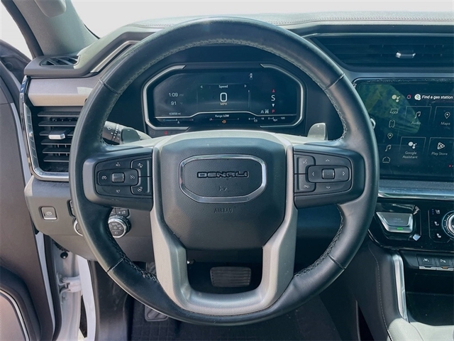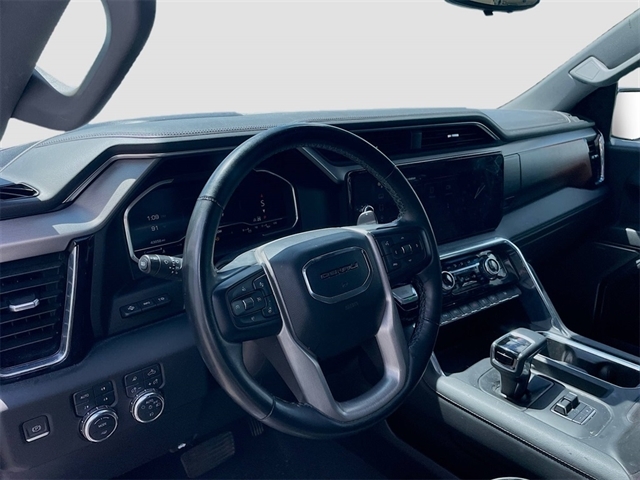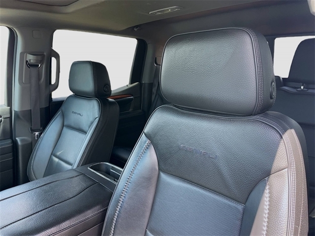 10-Speed Automatic, 4WD, Jet Black Leather, 12-Way Power Driver Seat Adjuster w/Lumbar, 12-Way Power Passenger Seat Adjuster w/Lumbar, 120-Volt Bed Mounted Power Outlet, 120-Volt Interior Power Outlet, 170 Amp Alternator, 2 Charge/Data USB Ports Inside Center Console, 2 Type-C Charge-Only Rear USB Ports, 2 USB Ports, 3.23 Rear Axle Ratio, 4-Wheel Disc Brakes, 7 Speakers, ABS brakes, Adaptive suspension, Air Conditioning, Alloy wheels, AM/FM radio: SiriusXM with 360L, Apple CarPlay/Android Auto, Auto High-beam Headlights, Auto-dimming door mirrors, Auto-dimming Rear-View mirror, Auto-Locking Rear Differential, Automatic temperature control, Auxiliary External Transmission Oil Cooler, Bed View Camera, Brake assist, Buckle to Drive, Bumpers: body-color, Chrome Header w/Signature Denali Chrome Grille, Chrome Recovery Hooks, Chrome Wheel To Wheel Assist Steps, Color-Keyed Carpeting Floor Covering, Compass, Deep-Tinted Glass, Delay-off headlights, Denali Premium Suspension w/Adaptive Ride Control, Denali Reserve Package, Driver door bin, Driver Memory, Driver vanity mirror, Dual front impact airbags, Dual front side impact airbags, Electric Rear-Window Defogger, Electronic Stability Control, Emergency communication system: OnStar and GMC connected services capable, Enhanced Automatic Emergency Braking, Floor-Mounted Center Console, Following Distance Indicator, Forge Perforated Leather Seat Trim, Forward Collision Alert, Front anti-roll bar, Front Bucket Seats, Front Center Armrest, Front dual zone A/C, Front fog lights, Front License Plate Kit, Front Pedestrian Braking, Front Rain-Sensing Wipers, Front reading lights, Front wheel independent suspension, Fully automatic headlights, Garage door transmitter, Genuine wood console insert, Genuine wood dashboard insert, Genuine wood door panel insert, GMC Connected Access Capable, GMC MultiPro Power Steps, HD Surround Vision, Heated 2nd Row Outboard Seats, Heated door mirrors, Heated Driver & Front Outboard Passenger Seating, Heated front seats, Heated rear seats, Heated steering wheel, Heavy-Duty Air Filter, Hill Descent Control, Hitch Guidance, Hitch View, Illuminated entry, In-Vehicle Trailering System App, Integrated Trailer Brake Controller, IntelliBeam Automatic High Beam On/Off, Keyless Open & Start, Lane Keep Assist w/Lane Departure Warning, LED Cargo Area Lighting, Low tire pressure warning, Memory seat, Multicolor 15`` Diagonal Head-Up Display, Navigation System, Occupant sensing airbag, OnStar & GMC Connected Services Capable, Outside temperature display, Overhead airbag, Overhead console, Panic alarm, Passenger door bin, Passenger vanity mirror, Perimeter Lighting, Power Door Locks, Power door mirrors, Power driver seat, Power Front Passenger Windows w/Express Up/Down, Power Front Windows w/Driver Express Up/Down, Power passenger seat, Power Rake & Telescoping Steering Column, Power Rear Windows w/Express Down, Power Sliding Rear Window w/Rear Defogger, Power steering, Power Sunroof, Power windows, Preferred Equipment Group 5SA, Premium audio system: GMC Infotainment System, Premium Bose 7-Speaker Sound System, Push Button Start, Radio data system, Radio: Premium GMC Infotainment Audio System, Rain sensing wipers, Rear Camera Mirror, Rear Cross Traffic Braking, Rear Pedestrian Detection, Rear reading lights, Rear seat center armrest, Rear step bumper, Rear Wheelhouse Liners, Rear window defroster, Remote keyless entry, Remote Vehicle Starter System, Safety Alert Seat, Security system, SiriusXM w/360L, Speed control, Speed-sensing steering, Split folding rear seat, Spray-On Pickup Bedliner w/Denali Logo, Steering Wheel Audio Controls, Steering wheel mounted audio controls, Tachomet