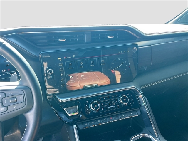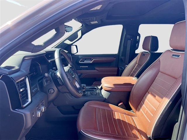 10-Speed Automatic, 4WD, Alpine Umber Leather, 12 Speakers, 120-Volt Bed Mounted Power Outlet, 120-Volt Interior Power Outlet, 16-Way Power Driver Seat Adjuster w/Lumbar, 16-Way Power Passenger Seat Adjuster w/Lumbar, 170 Amp Alternator, 2 Charge/Data USB Ports Inside Center Console, 2 Type-C Charge-Only Rear USB Ports, 2 USB Ports, 3.23 Rear Axle Ratio, 4-Wheel Disc Brakes, ABS brakes, Adaptive suspension, Air Conditioning, Alloy wheels, AM/FM radio: SiriusXM with 360L, Apple CarPlay/Android Auto, Auto High-beam Headlights, Auto-dimming door mirrors, Auto-dimming Rear-View mirror, Auto-Locking Rear Differential, Automatic temperature control, Bed View Camera, Bose Premium Series w/12-Speaker System, Brake assist, Buckle to Drive, Bumpers: body-color, Carbon Fiber Composite Bed, Chrome Recovery Hooks, Color-Keyed Carpeting Floor Covering, Compass, Deep-Tinted Glass, Delay-off headlights, Denali Premium Suspension w/Adaptive Ride Control, Driver door bin, Driver Memory, Driver vanity mirror, Dual Active Exhaust, Dual front impact airbags, Dual front side impact airbags, Electric Rear-Window Defogger, Electronic Stability Control, Emergency communication system: OnStar and GMC connected services capable, Enhanced Automatic Emergency Braking, Floor-Mounted Center Console, Following Distance Indicator, Forward Collision Alert, Front anti-roll bar, Front Bucket Seats, Front Center Armrest, Front dual zone A/C, Front fog lights, Front License Plate Kit, Front Pedestrian Braking, Front Rain-Sensing Wipers, Front reading lights, Front wheel independent suspension, Full Grain Leather Seat Trim, Fully automatic headlights, Garage door transmitter, Genuine wood console insert, Genuine wood dashboard insert, Genuine wood door panel insert, GMC Connected Access Capable, GMC MultiPro Tailgate Step Lights (LPO), HD Surround Vision, Heads-Up Display, Heated 2nd Row Outboard Seats, Heated door mirrors, Heated Driver & Front Outboard Passenger Seating, Heated front seats, Heated rear seats, Heated steering wheel, Heavy-Duty Air Filter, Hill Descent Control, Hitch Guidance, Hitch View, Illuminated entry, In-Vehicle Trailering System App, Integrated Trailer Brake Controller, IntelliBeam Automatic High Beam On/Off, Keyless Open & Start, Lane Keep Assist w/Lane Departure Warning, LED Cargo Area Lighting, Low tire pressure warning, Memory seat, Multicolor 15`` Diagonal Head-Up Display, MultiPro Tailgate Audio System by Kicker (LPO), Navigation System, Occupant sensing airbag, OnStar & GMC Connected Services Capable, Outside temperature display, Overhead airbag, Overhead console, Panic alarm, Passenger door bin, Passenger vanity mirror, Perimeter Lighting, Power Door Locks, Power door mirrors, Power driver seat, Power Front Passenger Windows w/Express Up/Down, Power Front Windows w/Driver Express Up/Down, Power moonroof, Power passenger seat, Power Rake & Telescoping Steering Column, Power Rear Windows w/Express Down, Power Sliding Rear Window w/Rear Defogger, Power steering, Power Sunroof, Power windows, Preferred Equipment Group 5SB, Premium audio system: GMC Infotainment System, Push Button Start, Radio data system, Radio: Premium GMC Infotainment Audio System, Rain sensing wipers, Rear Cross Traffic Braking, Rear Pedestrian Detection, Rear reading lights, Rear seat center armrest, Rear step bumper, Rear Underseat Storage (LPO), Rear Wheelhouse Liners, Rear window defroster, Remote keyless entry, Remote Vehicle Starter System, Safety Alert Seat, Security system, SiriusXM w/360L, Speed control, Speed-sensing steering, Split folding rear seat, Spray-On Pickup Bedliner w/Denali Logo, Steering Wheel Audio Controls, Steering wheel mounted audio contr