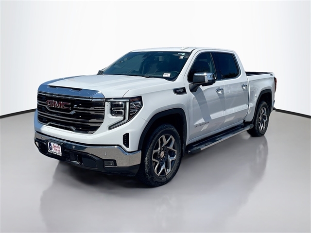 Clean CARFAX. CARFAX One-Owner. Summit White 2025 GMC Sierra 1500 SLT 4WD 10-Speed Automatic EcoTec3 5.3L V8