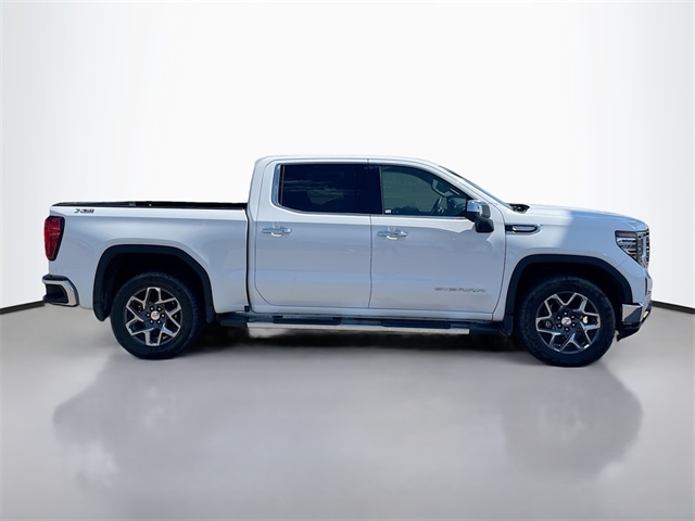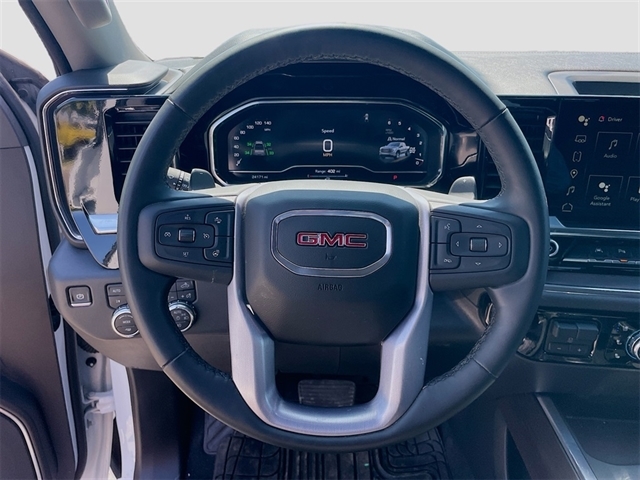 10-Speed Automatic, 4WD, Jet Black Leather, 10-Way Power Driver Seat Adjuster w/Lumbar, 10-Way Power Passenger Seat Adjuster w/Lumbar, 120-Volt Bed Mounted Power Outlet, 120-Volt Interior Power Outlet, 170 Amp Alternator, 2 Charge/Data USB Ports, 2 Charge/Data USB Ports Inside Center Console, 2 Type-C Charge-Only Rear USB Ports, 20`` Polished Aluminum Wheels, 3.23 Rear Axle Ratio, 4-Wheel Disc Brakes, 6 Speakers, 6-Speaker Audio System Feature, ABS brakes, Adaptive Cruise Control, Air Conditioning, Alloy wheels, AM/FM radio: SiriusXM with 360L, Apple CarPlay/Android Auto, Auto High-beam Headlights, Auto-dimming door mirrors, Auto-dimming Rear-View mirror, Auto-Locking Rear Differential, Automatic Emergency Braking, Automatic temperature control, Auxiliary External Transmission Oil Cooler, Brake assist, Buckle to Drive, Bumpers: chrome, Chrome Header & Chrome Grille Insert Bars, Chrome Wheel To Wheel Assist Steps, Color-Keyed Carpeting Floor Covering, Compass, Deep-Tinted Glass, Delay-off headlights, Driver door bin, Driver Memory, Driver vanity mirror, Dual Exhaust System, Dual front impact airbags, Dual front side impact airbags, Electric Rear-Window Defogger, Electronic Precision Shift, Electronic Stability Control, Emergency communication system: OnStar, Floor-Mounted Center Console, Following Distance Indicator, Forward Collision Alert, Front 40/20/40 Split-Bench Seat, Front anti-roll bar, Front Bucket Seats, Front Center Armrest w/Storage, Front dual zone A/C, Front fog lights, Front Frame-Mounted Black Recovery Hooks, Front License Plate Kit, Front Pedestrian Braking, Front Rain-Sensing Wipers, Front reading lights, Front wheel independent suspension, Fully automatic headlights, HD Rear Vision Camera, HD Surround Vision, Heated 2nd Row Outboard Seats, Heated door mirrors, Heated Driver & Front Outboard Passenger Seating, Heated front seats, Heated steering wheel, Heavy-Duty Air Filter, High Capacity Suspension Package, Hill Descent Control, Hitch Guidance, Hitch View, Illuminated entry, In-Vehicle Trailering System App, Integrated Trailer Brake Controller, IntelliBeam Automatic High Beam On/Off, Keyless Open & Start, Lane Keep Assist w/Lane Departure Warning, LED Cargo Area Lighting, Low tire pressure warning, Manual Tilt-Wheel & Telescoping Steering Column, Memory seat, Navigation System, Occupant sensing airbag, Off-Road Suspension, OnStar Services Capable, Outside temperature display, Overhead airbag, Overhead console, Panic alarm, Passenger door bin, Passenger vanity mirror, Perf Leather-Appointed Front Outboard Seat Trim, Perimeter Lighting, Power Door Locks, Power door mirrors, Power driver seat, Power Front Passenger Windows w/Express Up/Down, Power Front Windows w/Driver Express Up/Down, Power passenger seat, Power Rake & Telescoping Steering Column, Power Rear Windows w/Express Down, Power Sliding Rear Window w/Rear Defogger, Power steering, Power windows, Preferred Equipment Group 4SA, Premium Bose 7-Speaker Sound System, ProGrade Trailering System, Push Button Start, Radio data system, Radio: Premium GMC Infotainment Audio System, Rain sensing wipers, Rear Cross Traffic Braking, Rear Pedestrian Detection, Rear reading lights, Rear seat center armrest, Rear step bumper, Rear Wheelhouse Liners, Rear window defroster, Remote keyless entry, Remote Vehicle Starter System, Safety Alert Seat, Security system, Sierra Safety Plus Package, SiriusXM w/360L Trial Subscription, SLT Convenience Package, SLT Preferred Package, Speed control, Speed-sensing steering, Split folding rear seat, Spray-On Pickup Bedliner w/GMC Logo, Standard Suspension Package, Steering Wheel Audio Controls, Steering wheel mounted audio controls, Tachometer, Tele