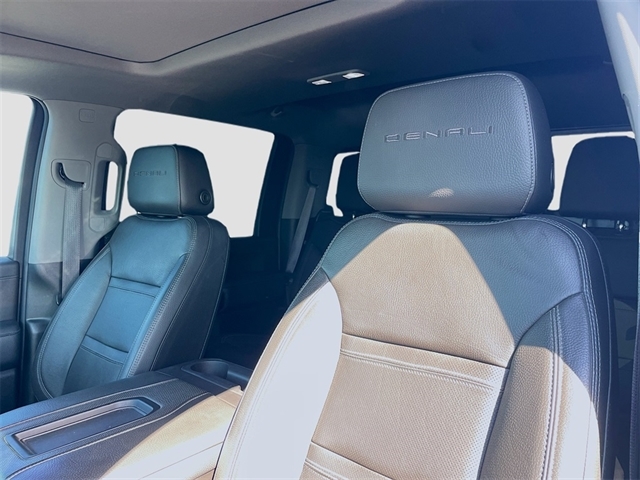 10-Speed Automatic, 4WD, Jet Black Leather, 10-Way Power Driver Seat Adjuster w/Lumbar, 10-Way Power Passenger Seat Adjuster w/Lumbar, 12-Volt Rear Auxiliary Power Outlet, 120-Volt Bed Mounted Power Outlet, 120-Volt Instrument Panel Power Outlet, 2 USB Ports, 2 USB Ports (1st Row), 2-Speed Active Transfer Case, 220 Amps Alternator, 2nd Row Dual USB Charge-Only Ports, 4-Wheel Disc Brakes, 6`` Rectangular Chromed Tubular Assist Steps, 7 Speakers, ABS brakes, Air Conditioning, Alloy wheels, AM/FM radio: SiriusXM with 360L, Apple CarPlay/Android Auto, Auto High-beam Headlights, Auto-dimming door mirrors, Auto-dimming Rear-View mirror, Automatic Emergency Braking, Automatic temperature control, Bed View Camera w/2 Trailer Camera Provisions, Body Color Wheel Arch Moldings (LPO), Bose Premium 7 Speaker Sound System, Brake assist, Bumpers: body-color, Compass, Compass Located In Instrument Cluster, Deep-Tinted Glass, Delay-off headlights, Denali Ultimate Package, Driver Alert Package I, Driver Alert Package II, Driver door bin, Driver Memory, Driver vanity mirror, Dual front impact airbags, Dual front side impact airbags, Electric Rear-Window Defogger, Electrical Lock Control Steering Column, Electronic Stability Control, Emergency communication system: OnStar and GMC Connected Services capable, Engine Block Heater, Exhaust Brake, Exterior Parking Camera Rear, Floor-Mounted Center Console, Following Distance Indicator, Forge Perforated Leather-Appointed Front Seat Trim, Forward Collision Alert, Front anti-roll bar, Front Bucket Seats, Front Center Armrest, Front Chrome Recovery Hooks, Front dual zone A/C, Front fog lights, Front License Plate Kit, Front reading lights, Front wheel independent suspension, Fully automatic headlights, Garage door transmitter, Genuine wood console insert, Genuine wood door panel insert, GMC Connected Access Capable, Gooseneck/5th Wheel Prep Package, HD Surround Vision w/2 Trailer View Camera Provisions, Heated & Ventilated Front Bucket Seats, Heated door mirrors, Heated Driver & Front Outboard Passenger Seats, Heated front seats, Heated steering wheel, Heavy-Duty 80 Amp Battery, Hill Descent Control, Hitch Guidance w/Hitch View, Illuminated entry, In-Vehicle Trailering System App, Inside Rearview Auto-Dimming Rear Camera Mirror, Integrated Trailer Brake Controller, IntelliBeam Automatic High Beam On/Off, Keyless Open & Start, Lane Change Alert w/Side Blind Zone Alert, Lane Departure Warning System, LED Cargo Area Lighting, LED Smoked Amber Roof Marker Lamps, Low tire pressure warning, Manual Tilt-Wheel/Telescoping Steering Column, Memory seat, Multicolor 15`` Diagonal Head-Up Display, Navigation System, Not Equipped w/Front & Rear Park Assist, Not Equipped w/Heated 2nd Row Outboard Seats, Occupant sensing airbag, Off-Road Suspension, OnStar & GMC Connected Services Capable, Outside temperature display, Overhead airbag, Overhead console, Panic alarm, Passenger door bin, Passenger vanity mirror, Pickup Box, Polished Exhaust Tip, Power Door Locks, Power door mirrors, Power driver seat, Power Front Passenger Windows w/Express Up/Down, Power passenger seat, Power Rear Windows w/Express Down, Power Sliding Rear Window w/Defogger, Power steering, Power Sunroof, Power windows, Power Windows w/Driver Express Up/Down, Preferred Equipment Group 5SA, Premium audio system: Premium GMC Infotainment System, Radio: AM/FM w/Prem GMC Infotainment System & Navi, Rear Cross Traffic Alert, Rear reading lights, Rear seat center armrest, Rear step bumper, Rear Wheelhouse Liners, Rear window defroster, Remote keyless entry, Remote Vehicle Starter System, Safety Alert Seat, Security system, Signature Denali Grille, SiriusXM w/360L, Speed control, Speed-sensing
