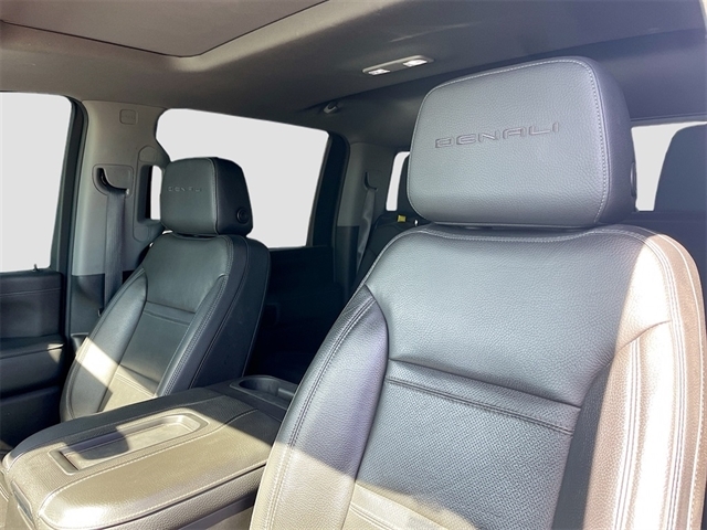 10-Speed Automatic, 4WD, Jet Black Leather, 10-Way Power Driver Seat Adjuster w/Lumbar, 10-Way Power Passenger Seat Adjuster w/Lumbar, 12-Volt Rear Auxiliary Power Outlet, 120-Volt Bed Mounted Power Outlet, 120-Volt Instrument Panel Power Outlet, 2 USB Ports, 2 USB Ports (1st Row), 2-Speed Active Transfer Case, 220 Amps Alternator, 2nd Row Dual USB Charge-Only Ports, 4-Wheel Disc Brakes, 6`` Rectangular Chromed Tubular Assist Steps, 7 Speakers, ABS brakes, Air Conditioning, Alloy wheels, AM/FM radio: SiriusXM with 360L, Apple CarPlay/Android Auto, Auto High-beam Headlights, Auto-dimming door mirrors, Auto-dimming Rear-View mirror, Automatic Emergency Braking, Automatic temperature control, Bed View Camera w/2 Trailer Camera Provisions, Body Color Wheel Arch Moldings (LPO), Bose Premium 7 Speaker Sound System, Brake assist, Bumpers: body-color, Compass, Compass Located In Instrument Cluster, Deep-Tinted Glass, Delay-off headlights, Denali Ultimate Package, Driver Alert Package I, Driver Alert Package II, Driver door bin, Driver Memory, Driver vanity mirror, Dual front impact airbags, Dual front side impact airbags, Electric Rear-Window Defogger, Electrical Lock Control Steering Column, Electronic Stability Control, Emergency communication system: OnStar and GMC Connected Services capable, Engine Block Heater, Exhaust Brake, Exterior Parking Camera Rear, Floor-Mounted Center Console, Following Distance Indicator, Forge Perforated Leather-Appointed Front Seat Trim, Forward Collision Alert, Front anti-roll bar, Front Bucket Seats, Front Center Armrest, Front Chrome Recovery Hooks, Front dual zone A/C, Front fog lights, Front License Plate Kit, Front reading lights, Front wheel independent suspension, Fully automatic headlights, Garage door transmitter, Genuine wood console insert, Genuine wood door panel insert, GMC Connected Access Capable, GMC MultiPro Tailgate Step Lights (LPO), Gooseneck/5th Wheel Prep Package, HD Surround Vision w/2 Trailer View Camera Provisions, Heated & Ventilated Front Bucket Seats, Heated 2nd Row Outboard Seats, Heated door mirrors, Heated Driver & Front Outboard Passenger Seats, Heated front seats, Heated steering wheel, Heavy-Duty 80 Amp Battery, Hill Descent Control, Hitch Guidance w/Hitch View, Illuminated entry, In-Vehicle Trailering System App, Inside Rearview Auto-Dimming Rear Camera Mirror, Integrated Trailer Brake Controller, IntelliBeam Automatic High Beam On/Off, Keyless Open & Start, Lane Change Alert w/Side Blind Zone Alert, Lane Departure Warning System, LED Cargo Area Lighting, LED Smoked Amber Roof Marker Lamps, Low tire pressure warning, Manual Tilt-Wheel/Telescoping Steering Column, Memory seat, Multicolor 15`` Diagonal Head-Up Display, MultiPro Audio System by Kicker (LPO), Navigation System, Not Equipped w/Front & Rear Park Assist, Occupant sensing airbag, Off-Road Suspension, OnStar & GMC Connected Services Capable, Outside temperature display, Overhead airbag, Overhead console, Panic alarm, Passenger door bin, Passenger vanity mirror, Pickup Box, Polished Exhaust Tip, Power Door Locks, Power door mirrors, Power driver seat, Power Front Passenger Windows w/Express Up/Down, Power passenger seat, Power Rear Windows w/Express Down, Power Sliding Rear Window w/Defogger, Power steering, Power Sunroof, Power windows, Power Windows w/Driver Express Up/Down, Preferred Equipment Group 5SA, Premium audio system: Premium GMC Infotainment System, Radio: AM/FM w/Prem GMC Infotainment System & Navi, Rear Cross Traffic Alert, Rear reading lights, Rear seat center armrest, Rear step bumper, Rear Wheelhouse Liners, Rear window defroster, Remote keyless entry, Remote Vehicle Starter System, Safety Alert Seat,