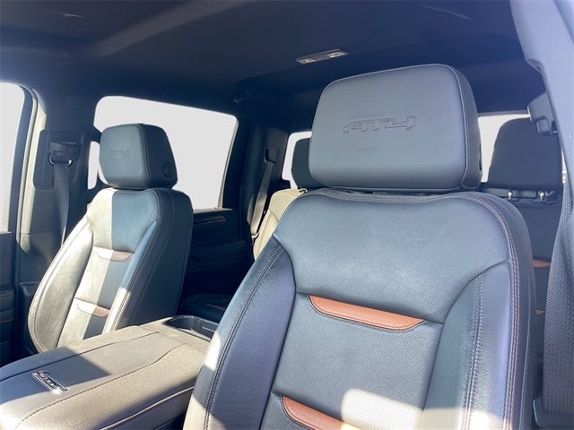 10-Speed Automatic, 4WD, Jet Black With Kalahari Accents Leather, 10-Way Power Driver Seat Adjuster w/Lumbar, 10-Way Power Passenger Seat Adjuster w/Lumbar, 120-Volt Bed Mounted Power Outlet, 120-Volt Instrument Panel Power Outlet, 2 Charge-Only Rear USB Ports, 2 Charge/Data USB Ports Inside Center Console, 2 USB Ports, 2-Speed Active Transfer Case, 220-Amp Alternator, 4-Wheel Disc Brakes, 7 Speakers, ABS brakes, Air Conditioning, Alloy wheels, AM/FM radio: SiriusXM with 360L, Apple CarPlay/Android Auto, AT4 Preferred Package, Auto High-beam Headlights, Auto-dimming door mirrors, Auto-dimming Rear-View mirror, Automatic Emergency Braking, Automatic temperature control, Bed View Camera w/2 Trailer Camera Provisions, Black Sport Step (LPO), Bose Premium 7-Speaker Sound System, Brake assist, Buckle to Drive, Bumpers: body-color, Compass, Deep-Tinted Glass, Delay-off headlights, Driver door bin, Driver Memory, Driver vanity mirror, Dual front impact airbags, Dual front side impact airbags, Electric Rear-Window Defogger, Electronic Stability Control, Emergency communication system: OnStar, Engine Block Heater, Exhaust Brake, Floor-Mounted Center Console, Following Distance Indicator, Forward Collision Alert, Front anti-roll bar, Front Bucket Seats, Front Center Armrest, Front dual zone A/C, Front fog lights, Front License Plate Kit, Front Pedestrian Braking, Front Prem Floor Liners w/Removable Carpet Insert, Front Rain-Sensing Wipers, Front reading lights, Front wheel independent suspension, Fully automatic headlights, Gloss Black Header Grille & Grille Insert Bars, HD Surround Vision, Heated 2nd Row Outboard Seats, Heated door mirrors, Heated Driver & Front Outboard Passenger Seats, Heated front seats, Heated rear seats, Heated steering wheel, Heavy-Duty 80 Amp Battery, High Idle Switch, Hill Descent Control, Hitch Guidance w/Hitch View, Illuminated entry, In-Vehicle Trailering System App, IntelliBeam Automatic High Beam On/Off, Keyless Open & Start, Lane Departure Warning System, LED Cargo Area Lighting, LED Smoked Amber Roof Marker Lamps, Low tire pressure warning, Manual Tilt-Wheel/Telescoping Steering Column, Memory seat, Occupant sensing airbag, Off-Road Suspension, OnStar Services Capable, Outside temperature display, Overhead airbag, Overhead console, Panic alarm, Passenger door bin, Passenger vanity mirror, Perforated Leather-Appointed Front Seat Trim, Pickup Box, Power door mirrors, Power driver seat, Power Front Passenger Windows w/Express Up/Down, Power passenger seat, Power Sliding Rear Window w/Defogger, Power steering, Power windows, Preferred Equipment Group 4SB, Push Button Start, Radio: AM/FM w/Premium GMC Infotainment System, Rain sensing wipers, Rear Cross Traffic Alert, Rear Prem Floor Liners w/Removable Carpet Insert, Rear reading lights, Rear seat center armrest, Rear step bumper, Rear Wheelhouse Liners, Rear window defroster, Remote keyless entry, Remote Vehicle Starter System, Safety Alert Seat, Security system, SiriusXM w/360L Trial Subscription, Speed control, Speed-sensing steering, Split folding rear seat, Spray-On Pickup Bedliner w/GMC Logo, Steering Wheel Audio Controls, Steering wheel mounted audio controls, Tachometer, Telescoping steering wheel, Tilt steering wheel, Traction control, Trailer Cam Provisions & Trailer Viewing Software, Trailer Side Blind Zone Alert, Trip computer, Turn signal indicator mirrors, Ultrasonic Front & Rear Park Assist, Unauthorized Entry Theft-Deterrent System, Universal Home Remote, Variably intermittent wipers, Ventilated Driver & Front Passenger Seats, Ventilated front seats, Voltmeter, Wheels: 20`` High Gloss Black 8 Spokes Aluminum, Winter Grille Cover, Wireless