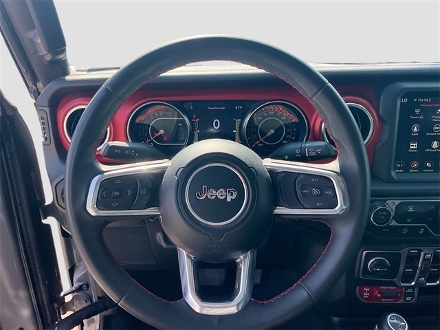 240 Amp Alternator, 4-Wheel Disc Brakes, 4.10 Rear Axle Ratio, 9 Speakers, 97 MPH Vehicle Max Speed Calibration, ABS brakes, Air Conditioning, Alloy wheels, AM/FM radio: SiriusXM, Apple CarPlay/Android Auto, Auto-dimming Rear-View mirror, Automatic temperature control, Body Color 3-Piece Hard Top, Body Color Fender Flares (2-Piece), Brake assist, Class IV Receiver Hitch, Compass, Daytime Running Lamps LED Accents, Delay-off headlights, Driver door bin, Driver vanity mirror, Dual front impact airbags, Dual front side impact airbags, Electronic Stability Control, Emergency communication system, Freedom Panel Storage Bag, Front anti-roll bar, Front Bucket Seats, Front Center Armrest w/Storage, Front dual zone A/C, Front fog lights, Front LED Fog Lamps, Front License Plate Bracket, Front reading lights, Fully automatic headlights, Garage door transmitter, Heated door mirrors, Heavy-Duty Engine Cooling, Illuminated entry, Integrated roll-over protection, LED Lighting Group, LED Park Turn Lamps, LED Premium Reflector Headlamps, LED Taillamps, Low tire pressure warning, Navigation System, No Soft Top, Occupant sensing airbag, Outside temperature display, Panic alarm, ParkView Rear Back-Up Camera, Passenger door bin, Passenger vanity mirror, Performance Suspension, Power door mirrors, Power steering, Power windows, Premium Cloth Low-Back Bucket Seats, Quick Order Package 24R Rubicon, Radio data system, Radio: Uconnect 4C Nav w/8.4`` Display, Rear anti-roll bar, Rear reading lights, Rear Sliding Window, Rear Window Defroster, Remote keyless entry, Security system, Speed control, Split folding rear seat, Steering wheel mounted audio controls, Tachometer, Telescoping steering wheel, Tilt steering wheel, Traction control, Trailer Hitch Zoom, Trailer Tow Package, Trip computer, Variably intermittent wipers, Voltmeter, Wheels: 17`` x 7.5`` Granite Crystal Aluminum. Recent Arrival!